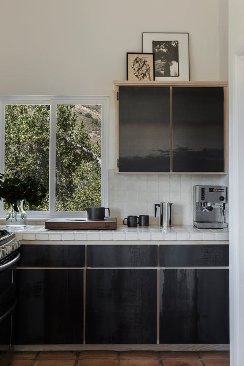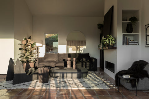 The exterior was immediately painted a dark earthy black to disappear into the lush green hillside, while the interior took on a warm white canvas backdrop for the lightshow to take place. This also set the scene for the light to cast amazing shadows onto the sculptural furnishings, art, and objects, throughout the day. And in the evening, nature would show off with its warm fire sky sunsets.